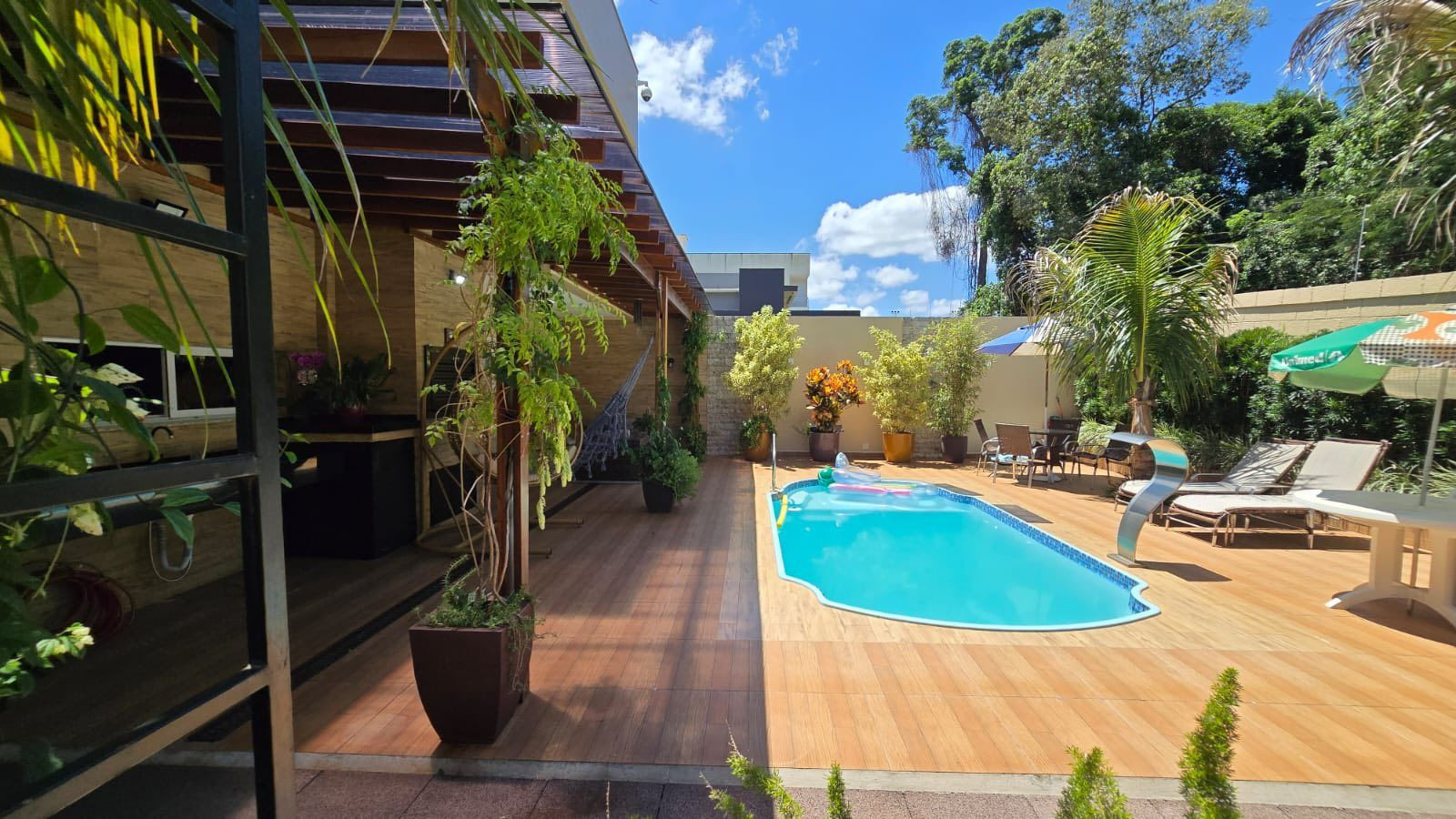 ➡️ Área gourmet com churrasqueira e piscina